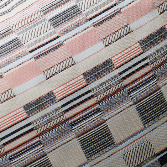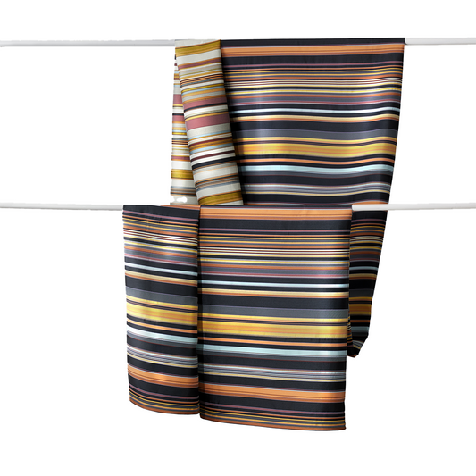 Lukes painting inspired two stories in the Territory collection, Morning and Evening. These stories reflect a more sophisticated colour palette and textile resolution, allowing those metals to shine through the matt weaves.