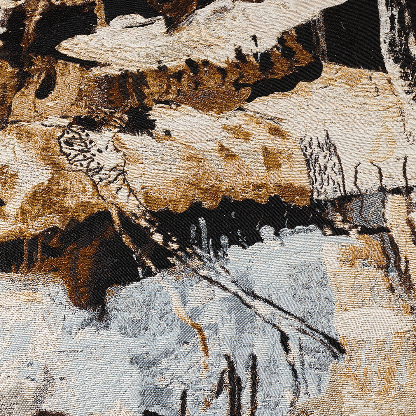 Dark works as the micro interpretation of Katherine. Here the collaboration with the loom created a more intricate response to the painting through complex and intricate weaves. The result is a brocade of sorts that feels precious.