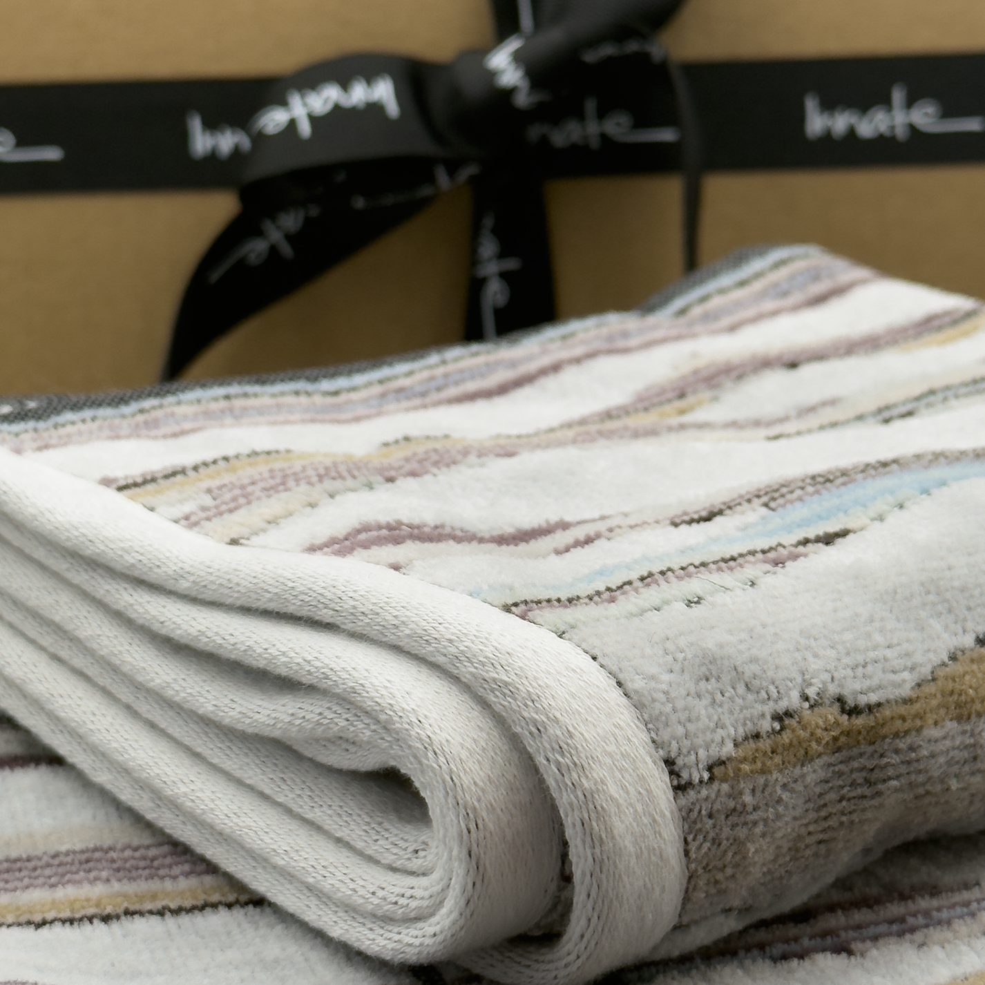 1 x Ripple Light 40x70cm hand towel, 2 x Ripple Light 70x140 bath towels presented in a gift box.