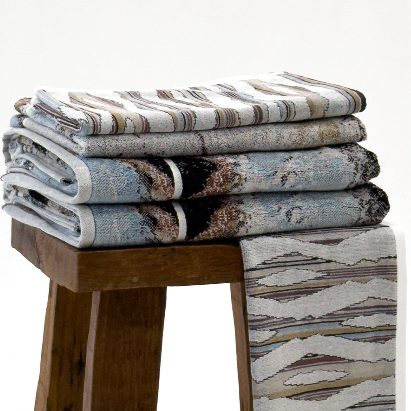 Bring contemporary Australian design to your space with the plush textures and grounding presence of Ripple Light and NT Morning towels. The luxurious velour of the Ripple Light paired with the intricate six colour jacquard weave of the NT Morning, bring the drama and art of Australia's landscape into everyday use.