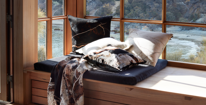 Echoing the high contrast of moonlight on water, Ripple Dark is predominantly black and white with neutral highlights.
