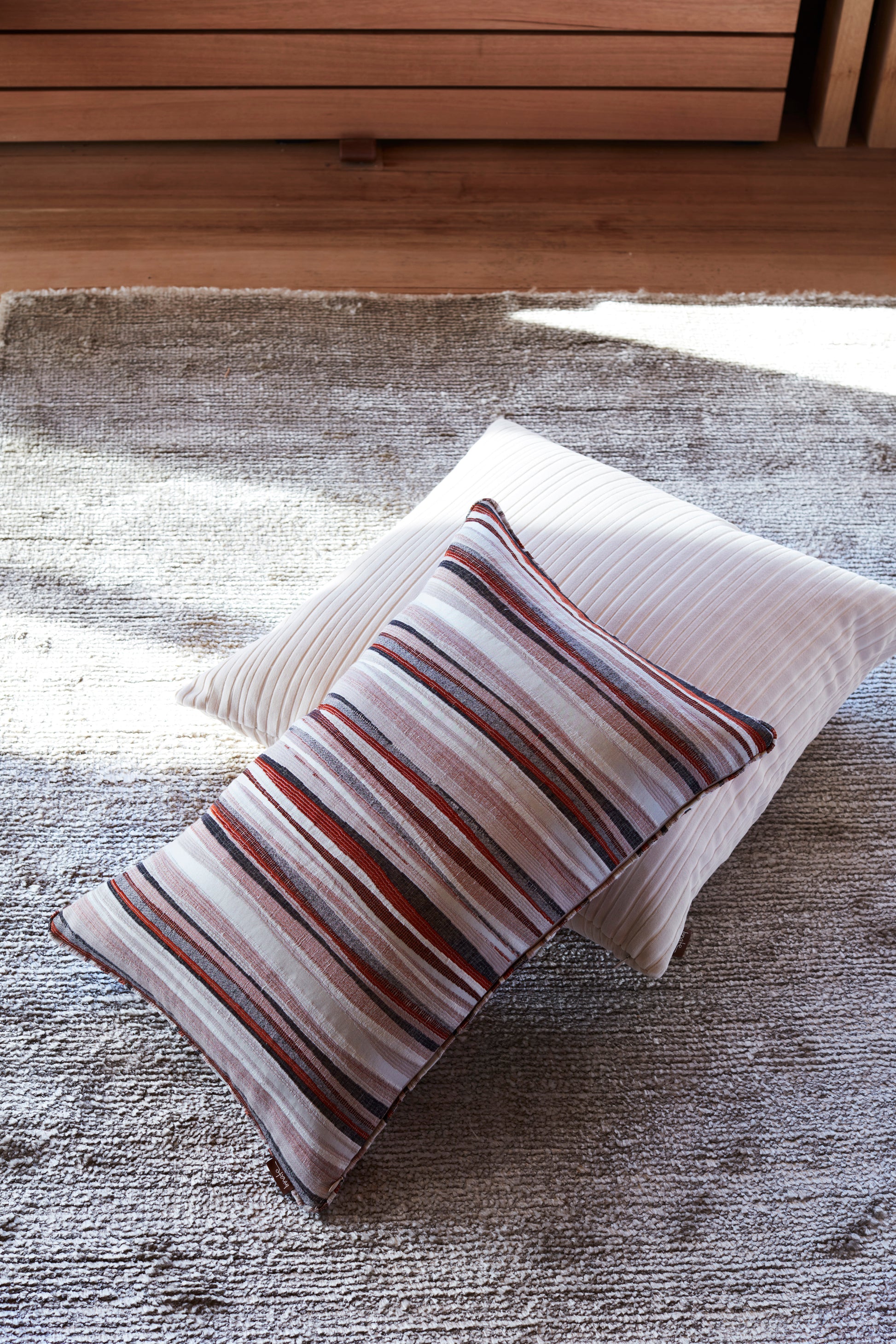 Available as 40 x 60 and 60 x 60 cushions with a self piping as a further play on stripes.